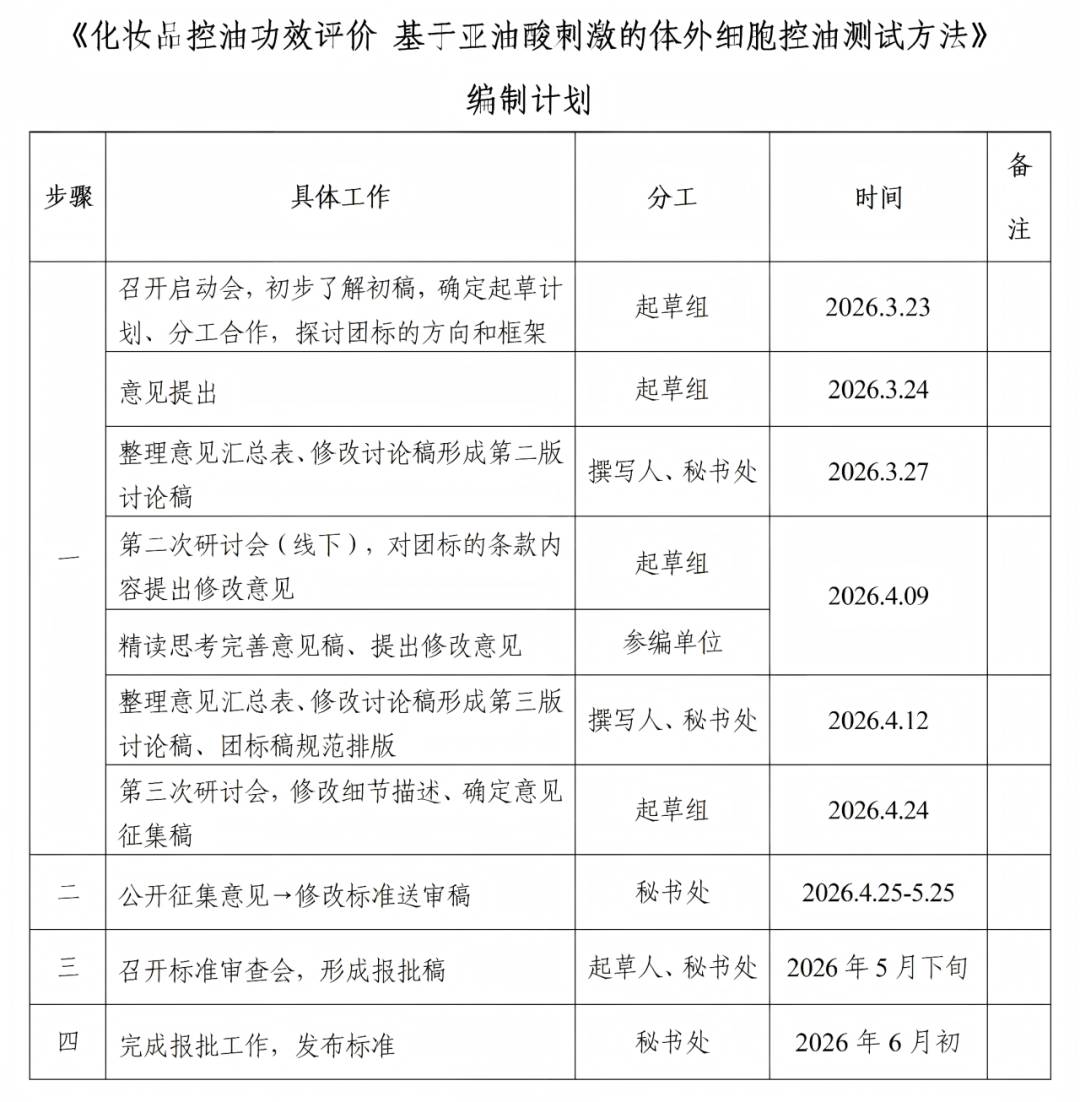至此,本次团体标准启动会圆满结束。启动会的顺利召开,为标准搭建了科学规范的编制框架,明确了后续研制方向与实施路径,为填补国内化妆品控油功效体外测评领域空白、规范研发检测及功效宣称行为奠定了坚实基础,为产业高质量发展注入了新动能。未来,编制组将凝聚参编单位合力,严格按照会议计划有序推进意见汇总、讨论稿修改、意见征集及标准审查等各项工作,确保标准早日发布实施,为我国化妆品行业规范化、科学化发展贡献力量。