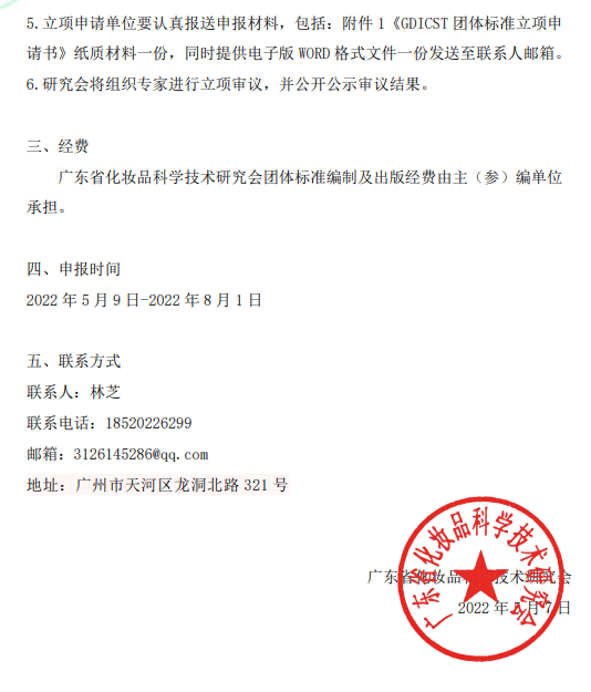 【征集】2022年度广东省化妆品科学技术研究会团体标准立项申报通知
